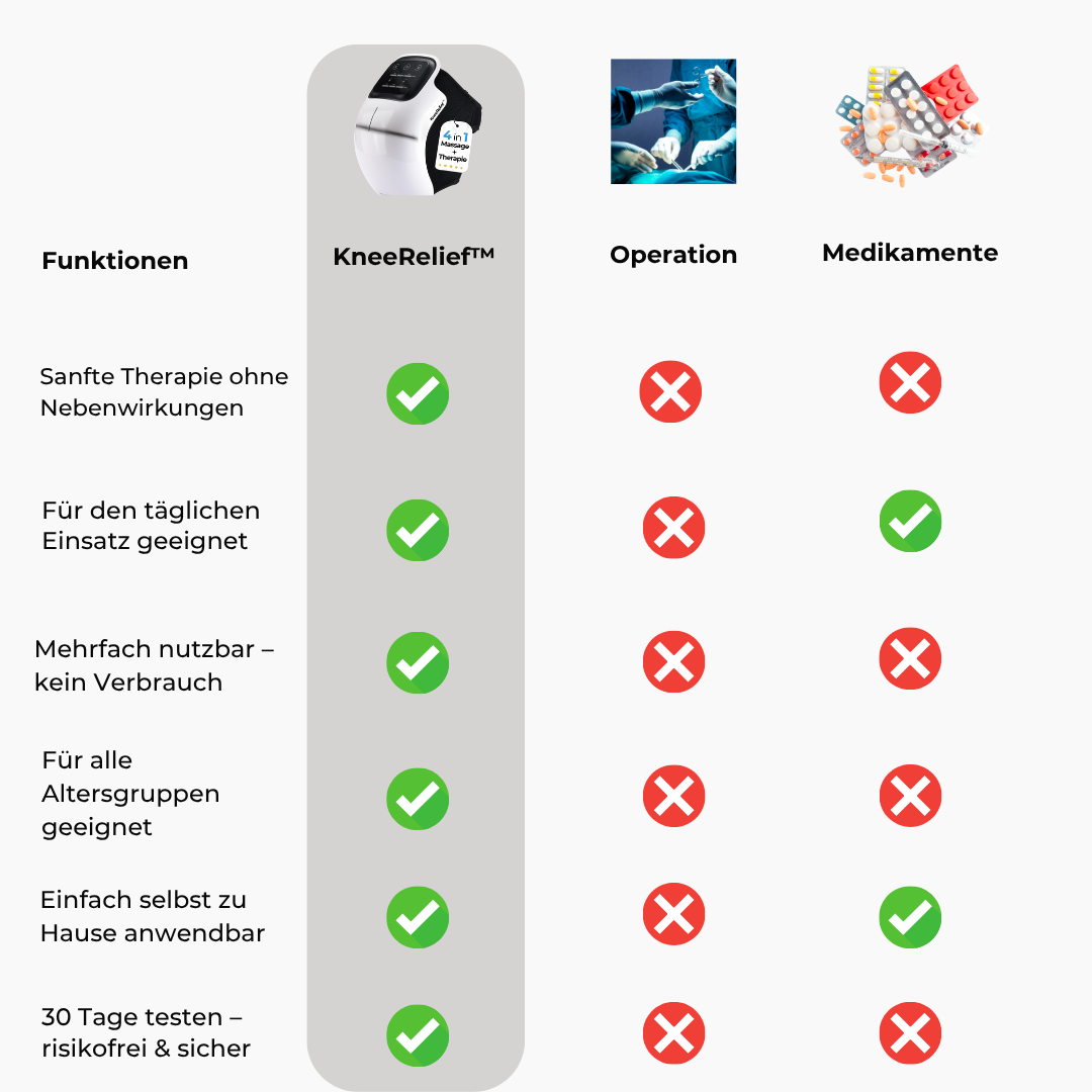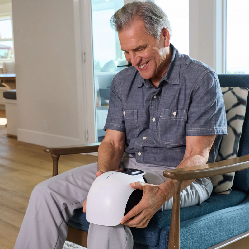 KneeRelief™ kombiniert Wärme, Rotlicht, Vibration und Massage, um gezielt Schmerzen im Knie zu lindern, die Durchblutung zu fördern und die Regeneration zu beschleunigen.